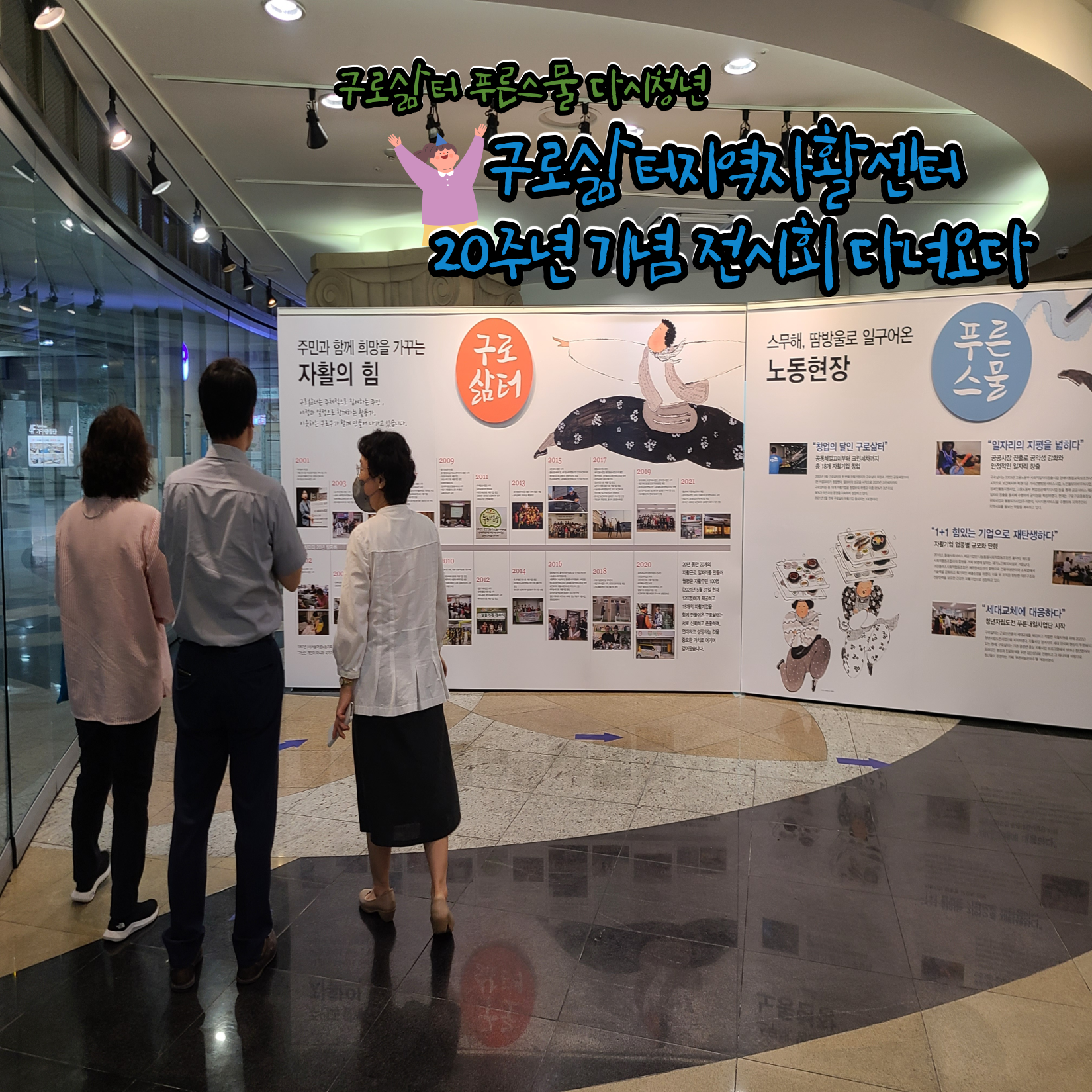ㅎㅎ 구로삶터지역자활센터의 20 주년을 기념하는 전시회를 다녀왔습니다 신도림역에 위치한 서울생활문화센터에서 진행 되었습니다 ◠‿◠